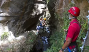 First we head towards the slopes of the Rincón de la Vieja volcano until we reach the Guachipelin hacienda and hotel; In this tour you will be able to do a Canopy, but including many things besides the cables, imagine doing Rappelling, Rock Climbing, Tarzan Swings, Via Ferrata, Hanging Bridges, all in the amazing canyon formed by the erosion of the Blanco River during millions of years.