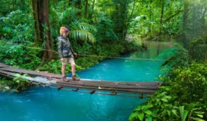Walking along the trails of the national park, we will visit an area where volcanic smoke is expelled at high temperatures at the bottom of the river, creating sulfur-scented bubbles. The impressive Rio Celeste waterfall offers an impressive sight.