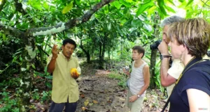En este tour pasamos por la finca de iguanas y jardín de plantas medicinales de la reservación indígena KEKOLDY, lugar donde una familia indígena se dedica a la reproducción de la Iguana Verde, especie que se encontraba en vías de extinción y gracias a iniciativas como estas se ha estado recuperando. Luego nos dirigimos a una pequeña finca ubicada en la Reserva Indígena Bribri, donde brindarán una demostración de la producción del chocolate.